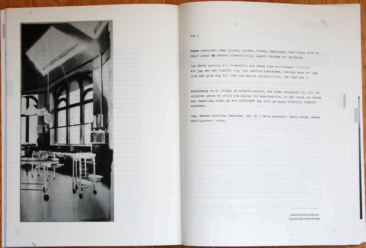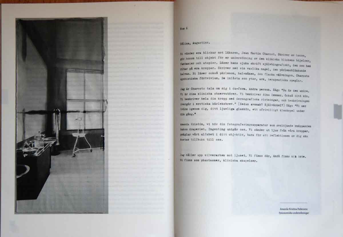 Jag är Charcot: tala om mig i du-form. Andra person. Säg: ”Du är den andre. Vi är dina kliniska observatörer. Jean Martin, vi beskriver dina lemmar. Också ditt kön. Vi beskriver hela din kropp, och beskrivningen övergår i ett erotisk kärleksbrev.” (Sedan avsmak? Själväckel?) Säg: ”Vi ser tvärs igenom ditt ljuvliga glaskön, ett ofrivilligt klockspel under din gång. Amanda Kristina, bakom draperiet hör vi din fotograferingsapparatur som avslöjande knäppanden. Ingenting undgår oss. Vi sänder ut ljus från våra kroppar, präglar formen för våra rörelser, vårt alfabet, i ditt objektiv.”