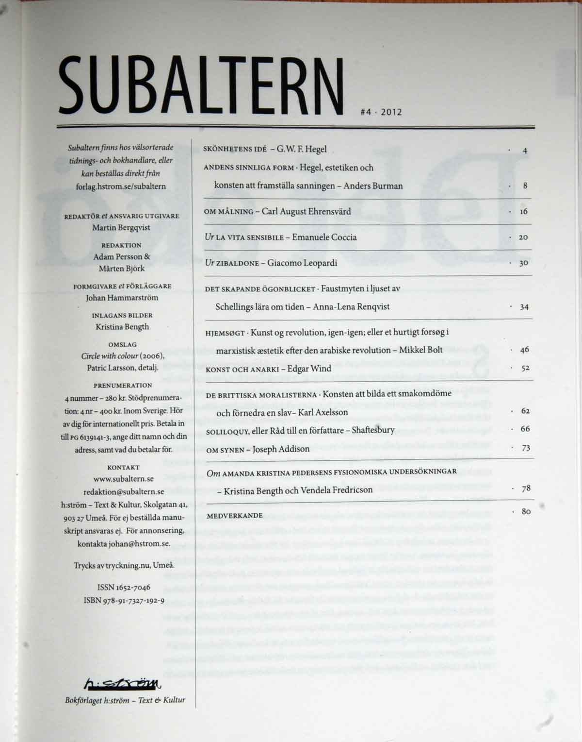 Nå, hur som: viljan tar gestalt - objektiveras - i det som blir objekt i subjektets föreställning. Också som den egna kroppen. Framträder som tillvaro i och med detta sitt objektskap, utan att det för den skull vara skapad, drömd eller uppfunnen av subjektet. Det är bara som objekt kroppen är avhängig ögat. Häri hans radikalitet: världen varken reell eller idé, men villkorad subjektet som tillvaro!