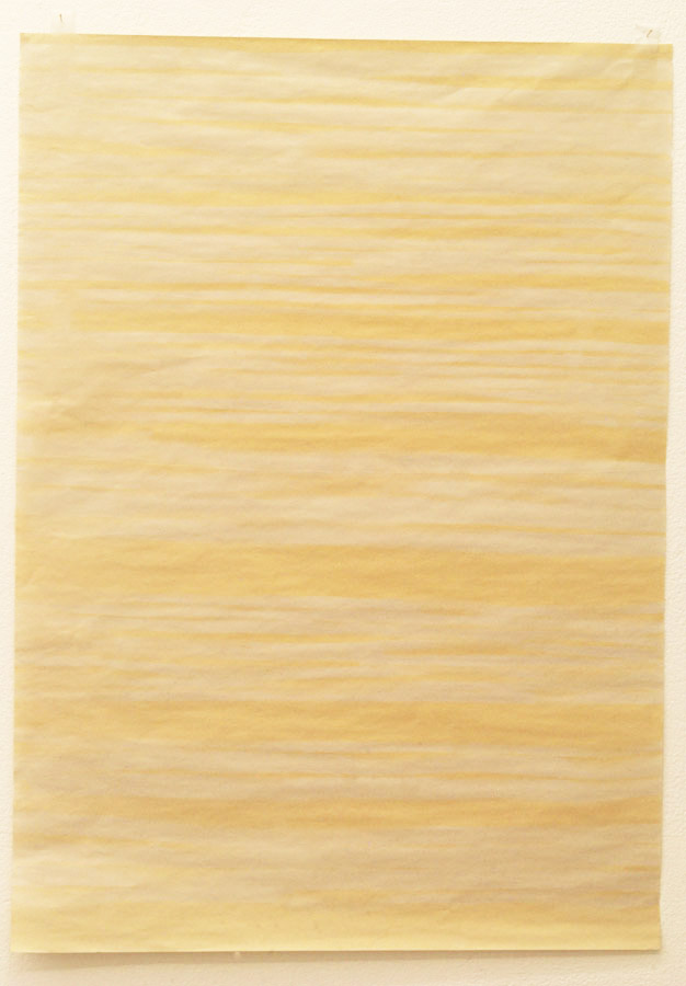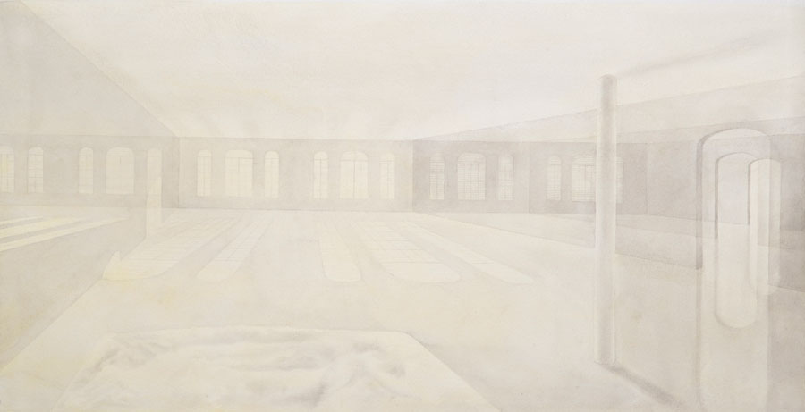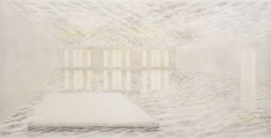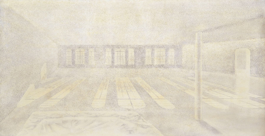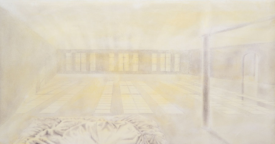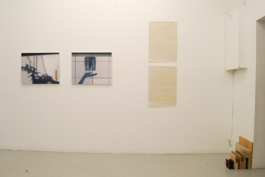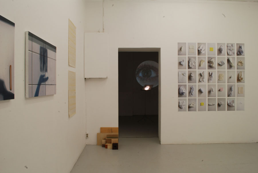 Solens gång märks på skuggorna och med det ljus och mörker som tränger sig på och tar sig in, men det som sker därute ekar bara svagt härinne och sköljs över av det större ekot. Det som här är där och där här. Det rum som är i rummet, det rum som är mellan dessa rum. Där är de, de sex konstnärerna, de står vid varsin väggsida av den hexagon som bildar det rum i rummet som i sin tur innesluter alla möjligheter. På ett sätt är de i det otroligt främmande. På ett annat är de i den självklara närhet som de själva valt.