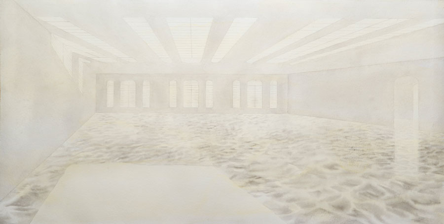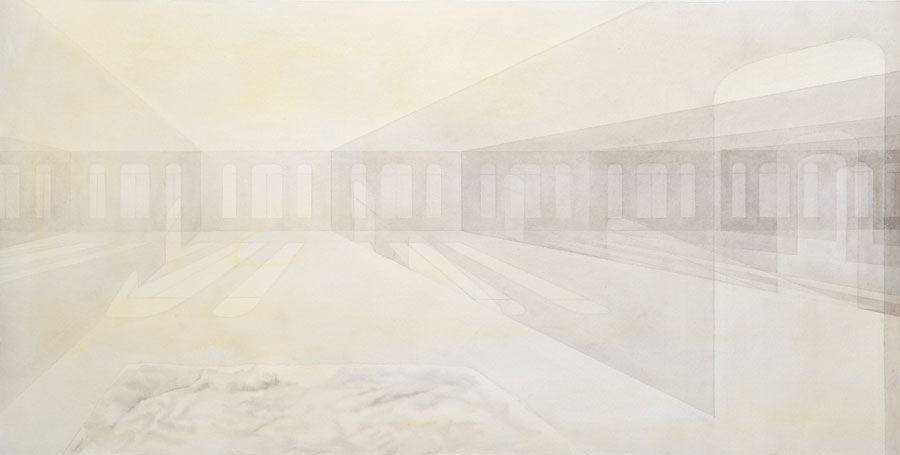 Det är i början eller slutet av dagen, men för de sex konstnärerna som är inuti rummet och mellan rummen är det sak samma.