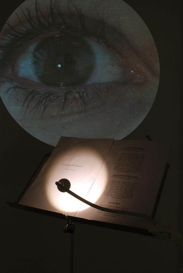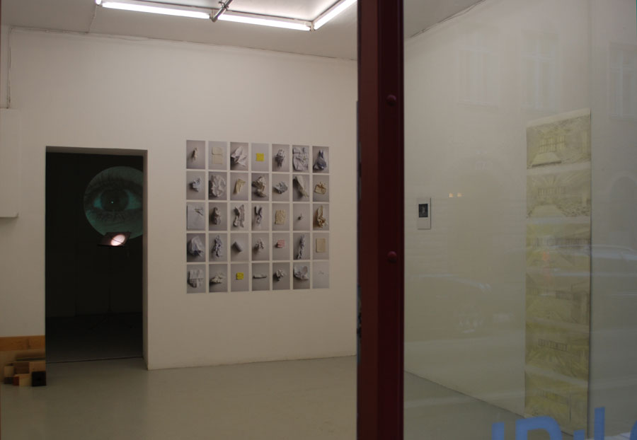 Så händer något. En av dem tar några steg framåt mot den punkt där väggen viker sig i en vinkel. Hon kikar runt hörnet och ser någon till vilken det finns en precis relation. Hon har bjudit in eller bjudits in av den andre. De har bjudit in eller bjudits in till att vara där, här i rummet, befinna sig vid en av hexagonens sex väggsidor och använda det kikhål in i det mittersta rummet som varje vägg är utrustad med.