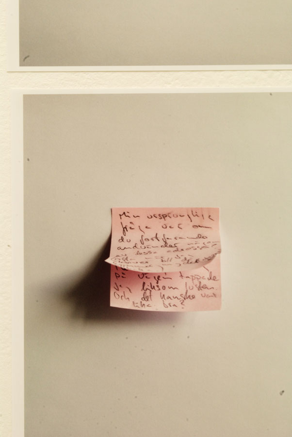 Rummet i mitten är ett rum från litteraturen, i den utgåva som de hänvisar varandra till på sida 38 Marguerite Duras Älskaren. Kanske är de alla där, men bara kanske. För mellan inbjudningarna är tre okända för en annan, är tre så otroligt främmande att de inte kan veta förrän de är här om dessa tre existerar, om hexagonen existerar. I rummet på sida 38 på Tjärhovsgatan 19.